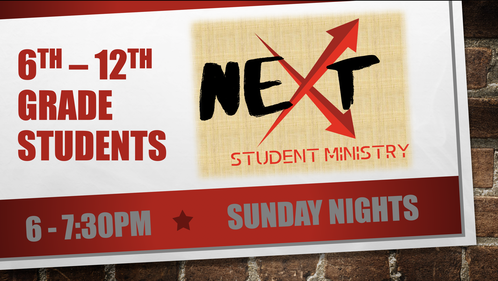Every student has three life-changing questions: Who am I? Where do I belong? And What is my purpose? Student Ministries is passionate about helping students answer these questions through fun and engaging environments that foster deep relationships with God and others. Simply put, NEXT Student Ministry is the Church's efforts to help each & every young person grow personally and spiritually.